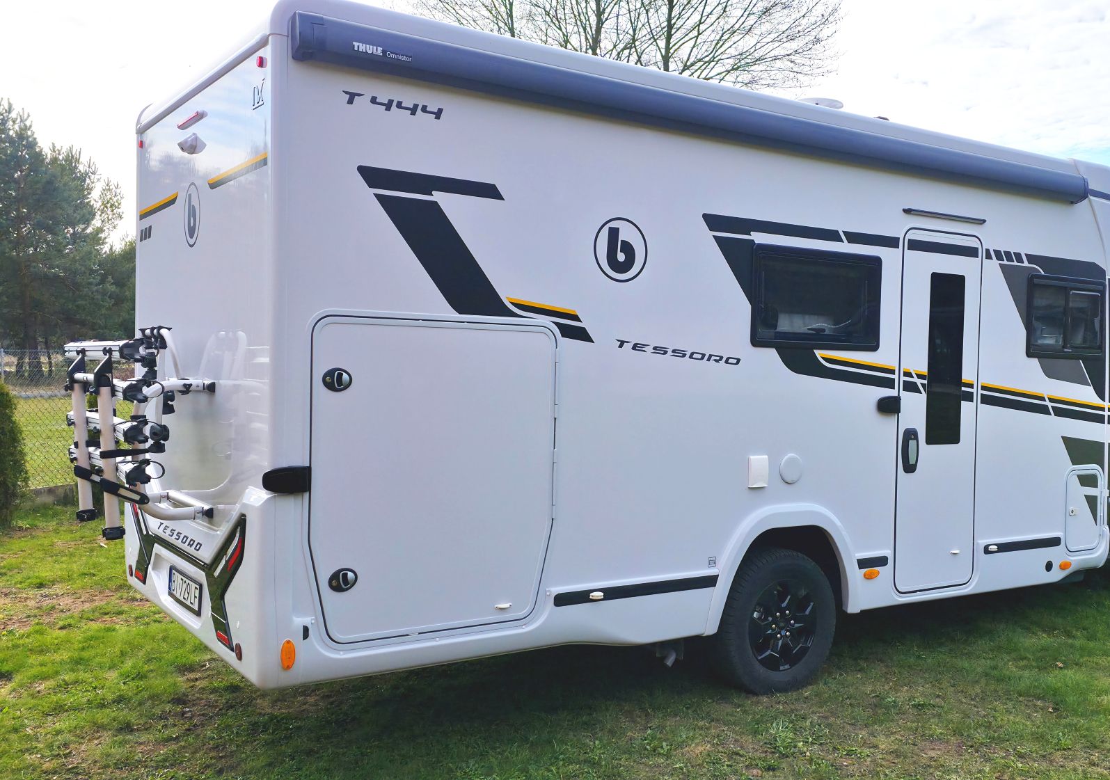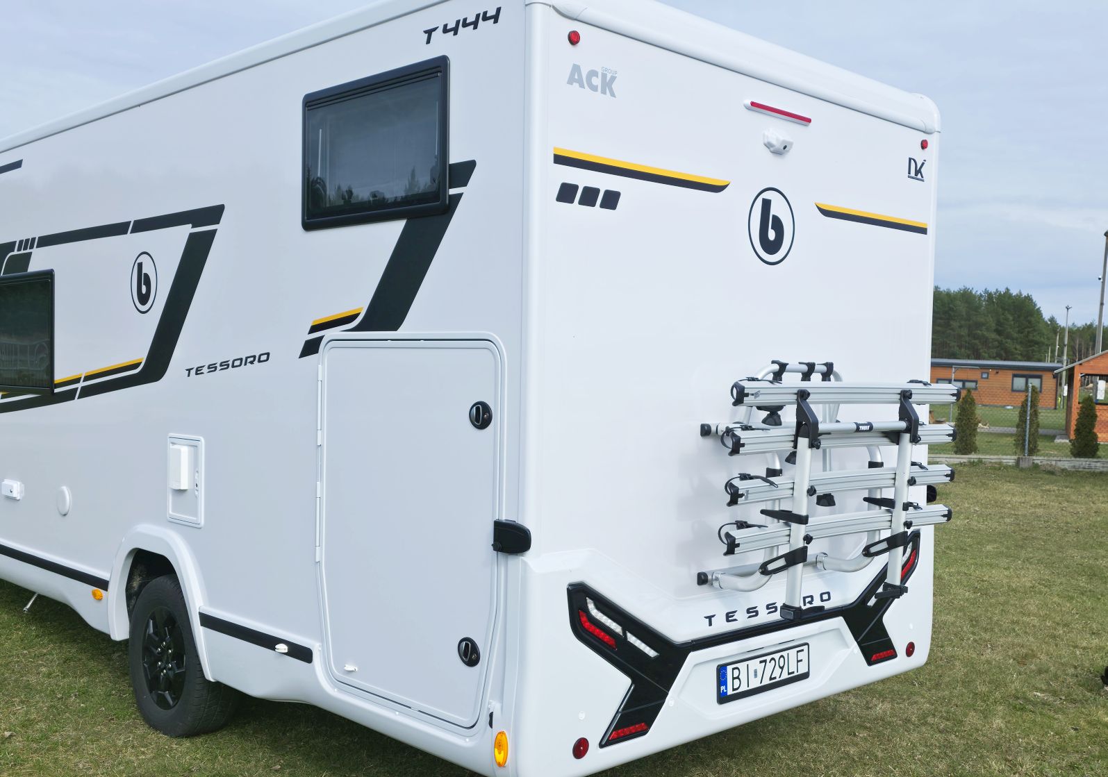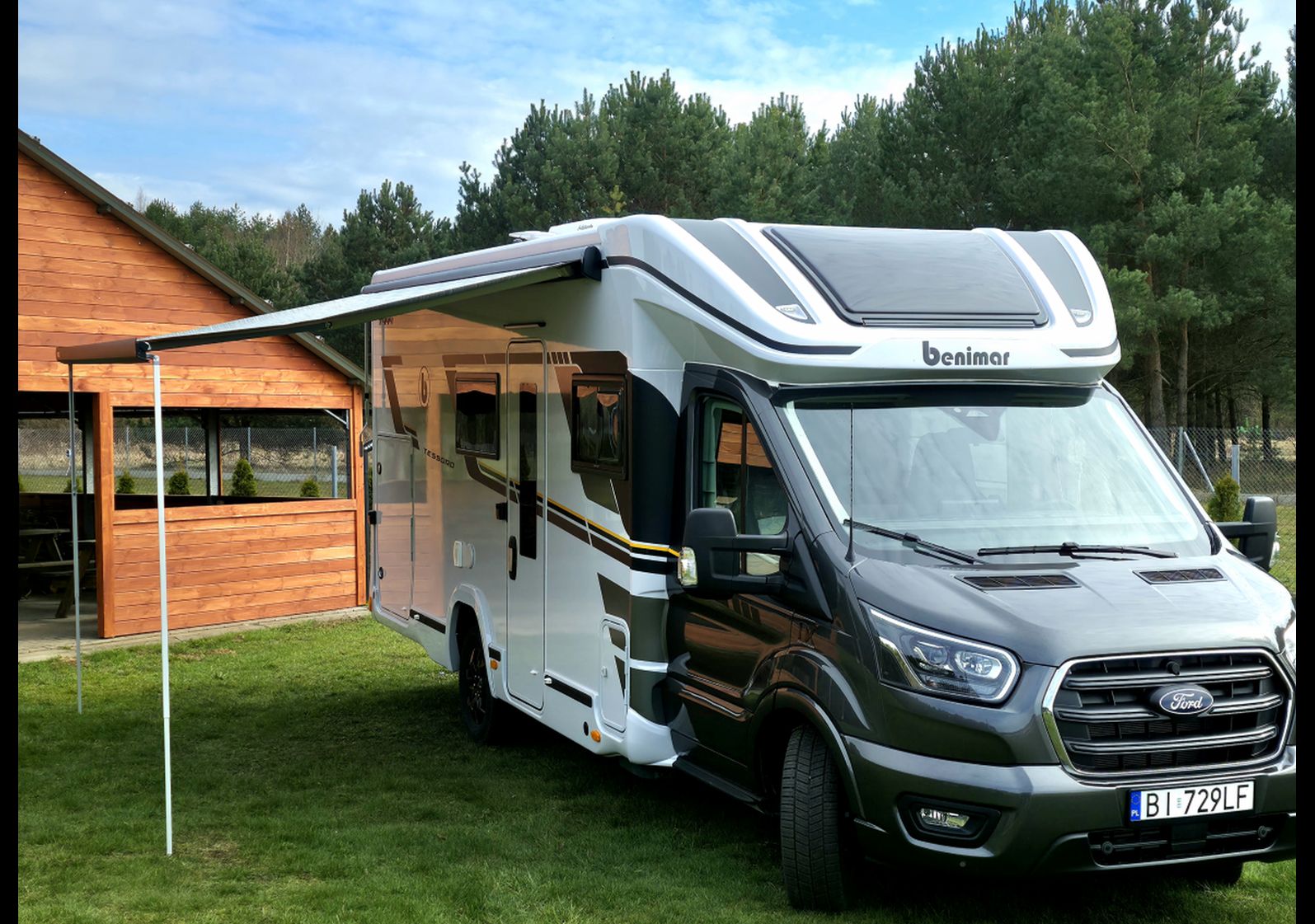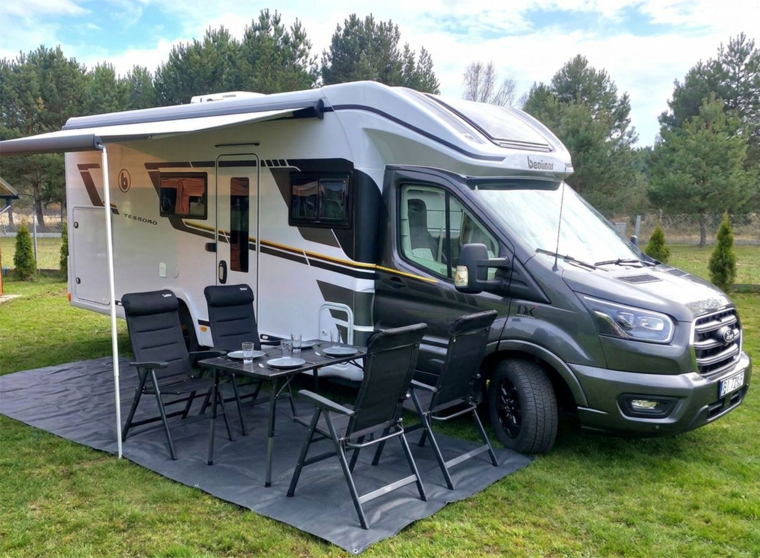 | Akcesoria kempingowe | mata przed kamper, stolik turystyczny + 5 krzeseł turystycznych, pasy sztormowe do markizy |