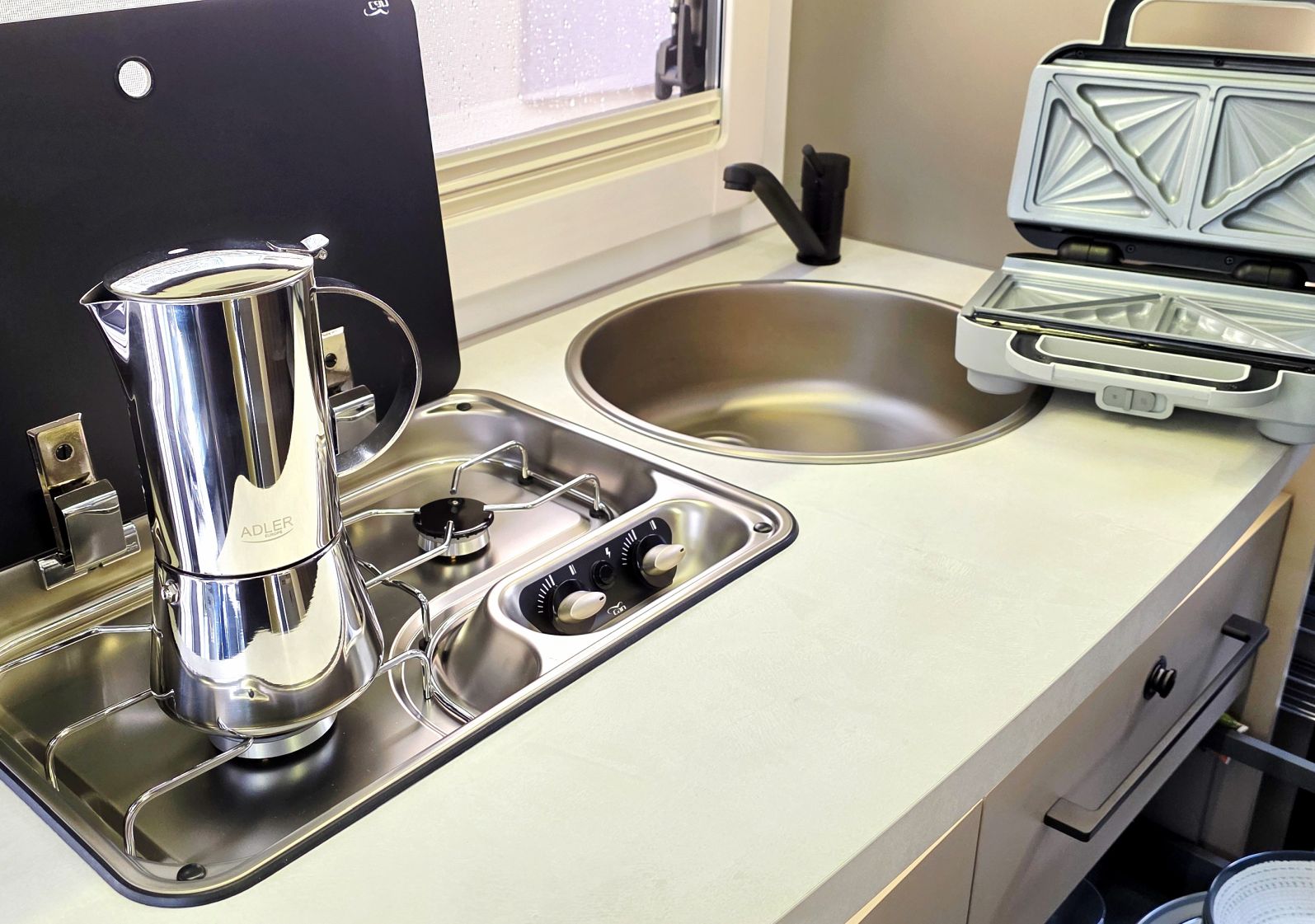 | Wyposażenie kuchni | sztućce, kawiarka, toster na kanapki typu sandwich, talerze, miski, kubki, kieliszki do wina, garnki, patelnia, airfryer, ekspres na kapsułki Dolce Gusto |